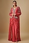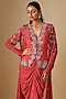 Coral Georgette & Crepe Hand Embroidered Jacket Set