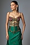 Featuring an emerald green fishtail skirt in satin base. It is paired with a crepe hand embroidered cage corset. Accentuate it with zircon dangler earrings, stilettos and a clutch for cocktail parties, receptions or festive celebrations.