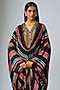 Featuring a multi-colored and black kaftan in crepe base with stripe print and hand embroidery. Style it with statement earrings, soft curls and block heels, perfect for evening soirees or boho themed parties.