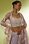 Featuring a lilac crop top in chanderi base with gota embroidery. It is paired with flared pants and a net dupatta. Accentuate it with stud earrings and heels for a complete look.