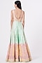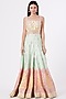 Featuring a sea green jumpsuit in dupion silk base with mirror, thread, and applique embroidery.