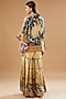 Rajdeep Ranawat features a mesmerizing Beige and Blue Gharara Set that captivates with its intricate print. The eye-catching kurta is crafted in silk. It comes with matching printed gharara pants. The designer gharara set is perfect for festive occasions.