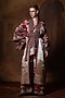 Rajdeep Ranawat presents a beige and red front open kimono in cotton linen base with print. It is paired with a belt. Accentuate it over a solid camisole and flared pants for a relaxed fusion look, perfect for brunches, casual gatherings or resort evenings.