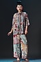 Beige & Sage Green Silk Printed Cropped Shirt Top