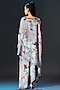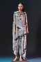 Rajdeep Ranawat presents a beige and sage green flared top in silk base with a boat neckline and print. It is paired with a side tuck-up skirt. Accentuate it with pants, stud earrings and heels for a festive look.