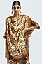 Featuring a beige kaftan tunic in silk base with drop shoulder, cowl neck and print. It is paired with matching satin pants.