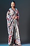 Rajdeep Ranawat presents a beige and slate blue kaftan in silk base with a long V-neckline, print and jewelled belt detail. Accentuate it with delicate stud earrings, and heels for a festive look that blends elegance with modern charm.