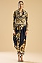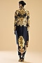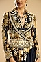Featuring a black and gold jacket in modal satin base with french knot, thread and crystal hand embroidery. It is paired with a draped dress. Accentuate it with block heels and statement earrings for an evening look.