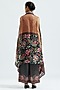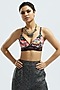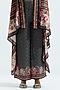 Featuring a black draped jacket in silk base with color blocking and ladder lace detailing. It is paired with a matching printed bralette having adjustable straps and printed palazzo pants.