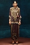 Rajdeep Ranawat presents a blue and maroon tunic in silk velvet base with a band collar and cuffs detail. Accentuate it with dhoti pants, statement earrings and heels for cocktail, sangeet or any festive occasion.