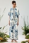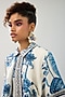 Rajdeep Ranawat features a blue and white pleated crop shirt in cotton linen base with print. Style it with pants, oversized sunglasses and a woven tote for effortless chic, perfect for brunch dates or vacation exploring.