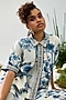 Blue & White Cotton Linen Printed Pleated Crop Shirt