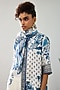 Rajdeep Ranawat features a blue and white crop shirt top in silk base with front plackets and print. Style it with pants, oversized sunglasses and a woven tote for effortless chic, perfect for brunch dates or vacation exploring.