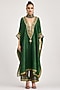 Emerald Green Silk Dupion Embroidered V-Neck Boxy Kaftan