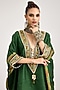 Rajdeep Ranawat presents an emerald green boxy kaftan in silk dupion base with a V-neckline and embroidery. Style this kaftan with straight pants, pearl-drop earrings and block heels for an effortlessly polished look. Perfect for festive luncheons, cultural gatherings or elegant daytime celebrations.