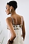Rajdeep Ranawat features a gold and white overlapped off-shoulder dress in crepe base with fluted straps, bell sleeves, and print. Style it with oversized earrings and a woven tote for effortless chic, perfect for brunch dates or vacation exploring.