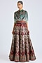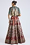 Featuring a maroon and green lehenga in modal satin base with print. It is paired with a blouse. Accentuate it with statement jewellery and heels for festive celebrations, sangeet or wedding ceremonies.