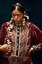 Rajdeep Ranawat presents a maroon kurta in silk velvet base with print and band collar detail. Accentuate it with dhoti pants, statement earrings and heels for cocktail, sangeet or any festive occasion.