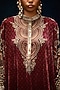 Rajdeep Ranawat presents a maroon shirt kurta in silk velvet base with gazette sleeves and cuffs detail. Accentuate it with dhoti pants, statement earrings and heels for cocktail, sangeet or any festive occasion.