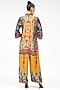 Rajdeep Ranawat presents multi-colored pant in modal satin base with print, front belt and an elasticated back detail. Style this pant, with a printed tunic, pearl-drop earrings and block heels for an effortlessly polished look. Perfect for festive luncheons, cultural gatherings or elegant daytime celebrations