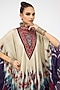 Featuring a multi-colored draped circular dress in silk base with a V-neckline, band collar and back keyhole detail. Style this dress with tailored straight pants, pearl-drop earrings and block heels for an effortlessly polished look. Its perfect for festive luncheons, cultural gatherings or elegant daytime celebrations.