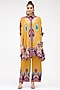 Rajdeep Ranawat presents a mustard circular gathered shirt in silk base with cuffs, collar and gathered sleeves. Style this shirt with tailored straight pants, pearl-drop earrings and block heels for an effortlessly polished look. Perfect for festive luncheons, cultural gatherings or elegant daytime celebrations.