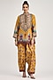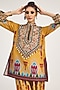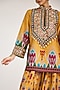 Rajdeep Ranawat presents a mustard tunic in silk dupion base with a band collar, print and embroidery. Style this tunic with straight pants, pearl-drop earrings and block heels for an effortlessly polished look. Perfect for festive luncheons, cultural gatherings or elegant daytime celebrations.