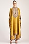 Mustard Silk Dupion Printed & Embroidered Boxy Kaftan
