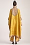 Rajdeep Ranawat presents a mustard boxy kaftan in silk dupion base with a band collar and embroidery. Style this kaftan with straight pants, pearl-drop earrings and block heels for an effortlessly polished look. Perfect for festive luncheons, cultural gatherings or elegant daytime celebrations.