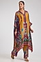 Rajdeep Ranawat features a mustard tunic in silk base with a band collar, cuff sleeves and print. It is paired with palazzo having front belt and an elasticated waistband. Style this vibrant set with oxidized silver earrings and juttis for a festive look that balances bold prints with traditional elegance.