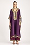 Purple Silk Dupion Embroidered V-Neck Boxy Kaftan