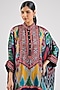 Featuring a purple tunic in silk base. It is paired with pants. Accentuate it with dangler earrings and block heels for festive celebrations or pooja ceremony..