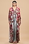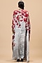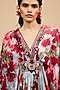 Rajdeep Ranawat presents red and pale grey kaftan in silk base with V-neckline, print and jewelled belt. Accentuate it with flats and statement earrings for a touch of glam, perfect for festive brunches or intimate celebrations.