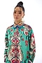 Rajdeep Ranawat presents a tiffany colored shirt in cotton poplin base with print, cuff and collar detail. Accentuate it with pants, statement earrings and heels for an evening look.