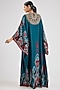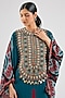 Featuring a turquoise kaftan in bemberg crepe base. Accentuate it with statement earrings and mules for brunches or garden parties.