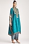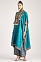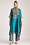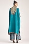 Rajdeep Ranawat presents a turquoise boxy kaftan in silk dupion base with a band collar, print and embroidery. Style this kurta with straight pants, pearl-drop earrings and block heels for an effortlessly polished look. Perfect for festive luncheons, cultural gatherings or elegant daytime celebrations.