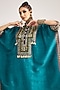Turquoise Silk Dupion Print & Embroidered Boxy Kaftan