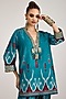 Turquoise Silk Dupion Print & Embroidered Tunic