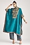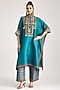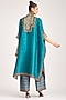 Rajdeep Ranawat presents turquoise pants in silk dupion base with print, front belt and an elasticated back. Style this pant with a printed tunic, pearl-drop earrings and block heels for an effortlessly polished look. Perfect for festive luncheons, cultural gatherings or elegant daytime celebrations