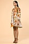 Rajdeep Ranawat presents a warm yellow A-line dress in cotton linen base with a band collar, print and embroidery. Turn heads in hoop earrings and sleek patent block heels, perfect for high-profile soirees.