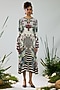 Rajdeep Ranawat features a white and black dress in modal satin base with a round-neckline, front keyhole and print. Style with a sleek low bun and strappy heels for a refined touch, ideal for evening cocktails or rooftop dinners.