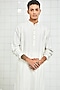 Featuring a white pintucked kurta in viscose base with tonal thread quilting work. It has a four button placket, cuff at the sleeves and handmade buttons. This contains only one piece.