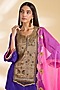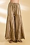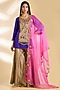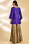 Featuring a purple short kurta in silk base with hand embroidery. It is paired with golden tissue silk gharara and an organza scalloped dupatta. Style it with dangler earrings, cuff, and mojaris for a wedding or festive occasion.