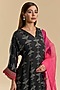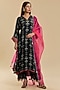 Featuring a black kaftan kurta in crepe and organza base with print. It is paired with scalloped palazzo pants and a dupatta. Accentuate it with statement jewellery and heels for festive occasions.