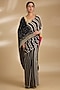 Featuring a black and white striped saree in crepe base with sequins hand embroidery. It is paired with an unstitched blouse piece. Accentuate it with dangler earrings and heels for a festive occasion, cultural celebration or family gathering.