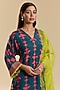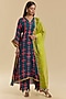 Featuring a blue kaftan kurta in crepe and organza base with print. It is paired with scalloped palazzo pants and a dupatta. Accentuate it with statement jewellery and heels for festive occasions.