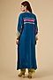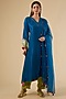 Featuring a blue striped kaftan in silk and modal satin base with hand embroidery. It is paired with pants and an organza dupatta. Accentuate it with dangler earrings and heels for a festive occasion, pooja ceremony or family gathering.
