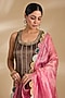 Featuring a charcoal black short anarkali in tissue silk with hand embroidery. It is paired with salwar pants and an organza dupatta. Accentuate it with dangler earrings and heels for a festive occasion, cultural celebration, engagement or wedding ceremony.