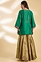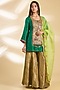 Featuring a green short kurta in silk base with hand embroidery. It is paired with golden tissue silk gharara and an organza scalloped dupatta. Style it with dangler earrings, cuff, and mojaris for a wedding or festive occasion.