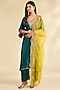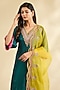 Featuring a green kaftan kurta in twill silk, modal satin and organza base with embellishment. It is paired with pants and a dupatta. Accentuate it with statement jewellery and heels for a sangeet ceremony.